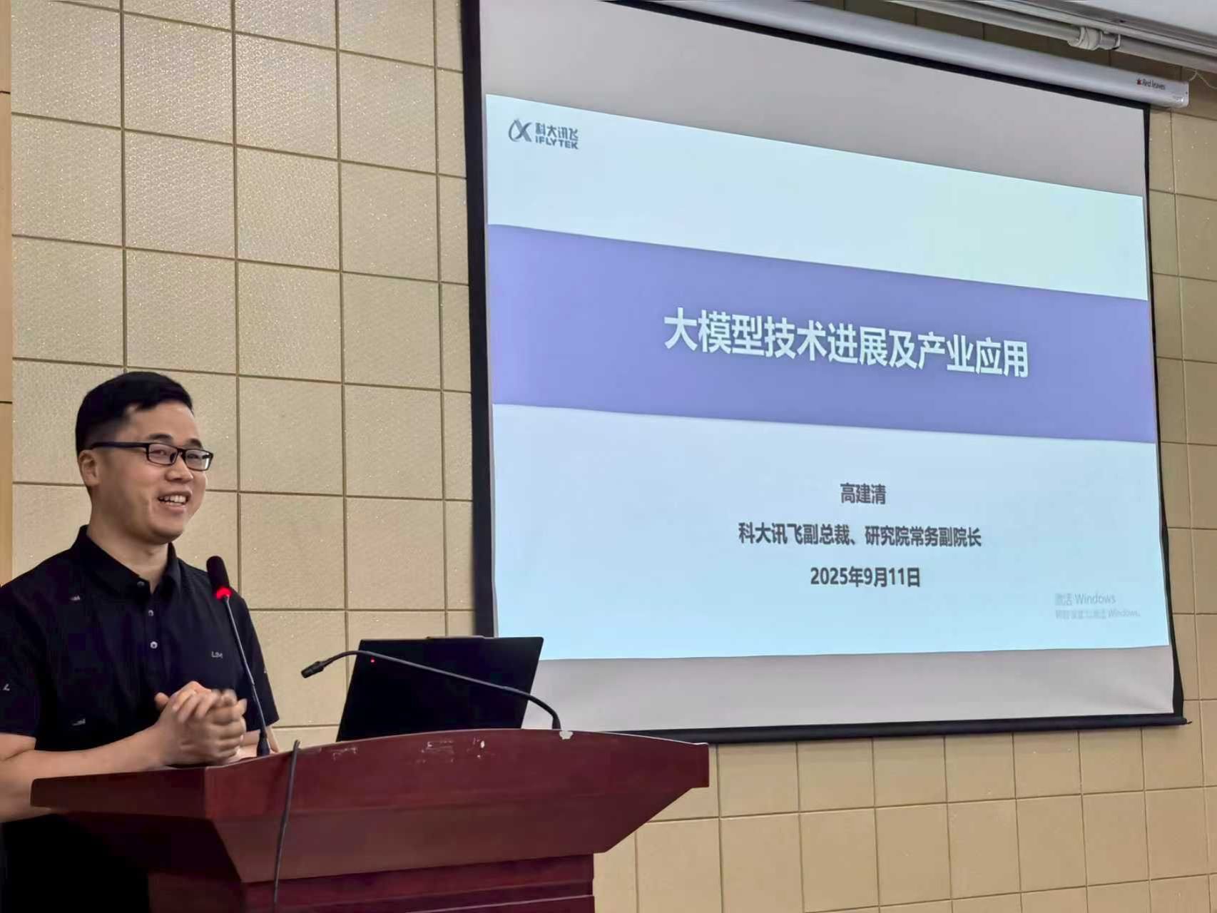 9月18日,今年会jinnianhuicom举办人工智能专题讲座暨就业宣讲会,邀请科大讯飞副总裁、研究院常务副院长高建清做客翱翔灵犀学术殿堂,为学校师生作题为《大模型技术进展及产业应用》的专题报告。计算机学院党委副书记赵媛媛、学工主管刘百芳、学工秘书曹香及200余名学生参加。