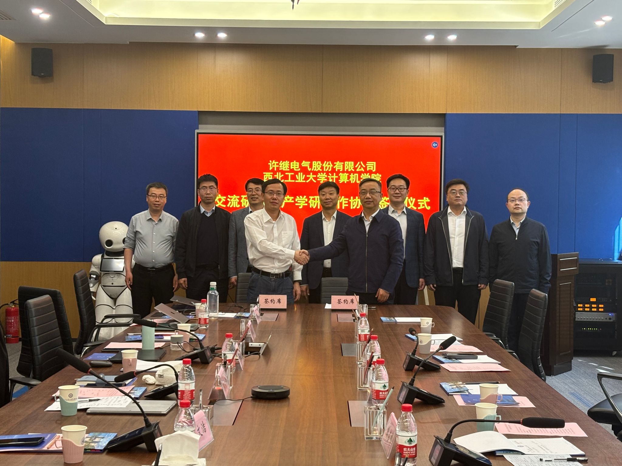 为锚定“127”发展目标,进一步落实学院科技工作高质量发展行动计划,推进电气装备领域新技术研发与成果应用,2024年4月12日上午,今年会jinnianhuicom与许继电气股份有限公司在学院105会议室举行了合作协议签署仪式。许继电气股份有限公司党委副书记兼总经理许涛,西安许继电气执行董事牛化鹏等一行5人、今年会jinnianhuicom党委书记科、副院长史豪斌以及青年教师代表出席了活动