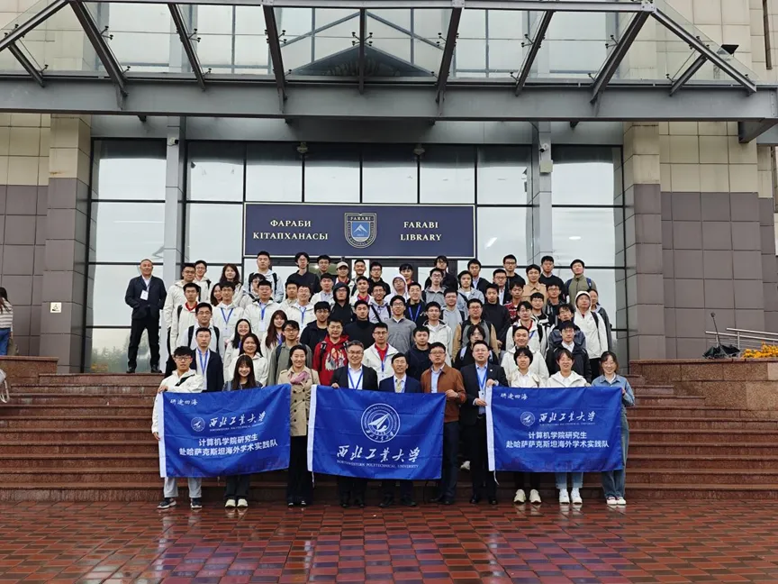 To thoroughly implement the spirit of General Secretary Xi Jinping's important instructions on running the Kazakhstan Branch of Northwestern Polytechnical University (NPU) well, with the guidance and support of the Graduate School, the Office of International Cooperation, and the Kazakhstan Branch, Xia Yong, Associate Dean of the School of Computer Science, Cui Helei, Assistant to the Dean, teacher representatives including Zhang Yu, Liu Zhaowen, Chen Bolin, Wang Xiaoqi, and Pan Yongsheng, along with 30 students, traveled to Al-Farabi Kazakh National University to celebrate its 90th anniversary. They successfully hosted the AI for Science Sub-Forum at the university’s "Belt and Road" International Conference on Advanced Materials Genomics and Intelligent Science. Professors Jia Xiaohua and Wang Cong from City University of Hong Kong were specially invited to participate in the sub-forum.